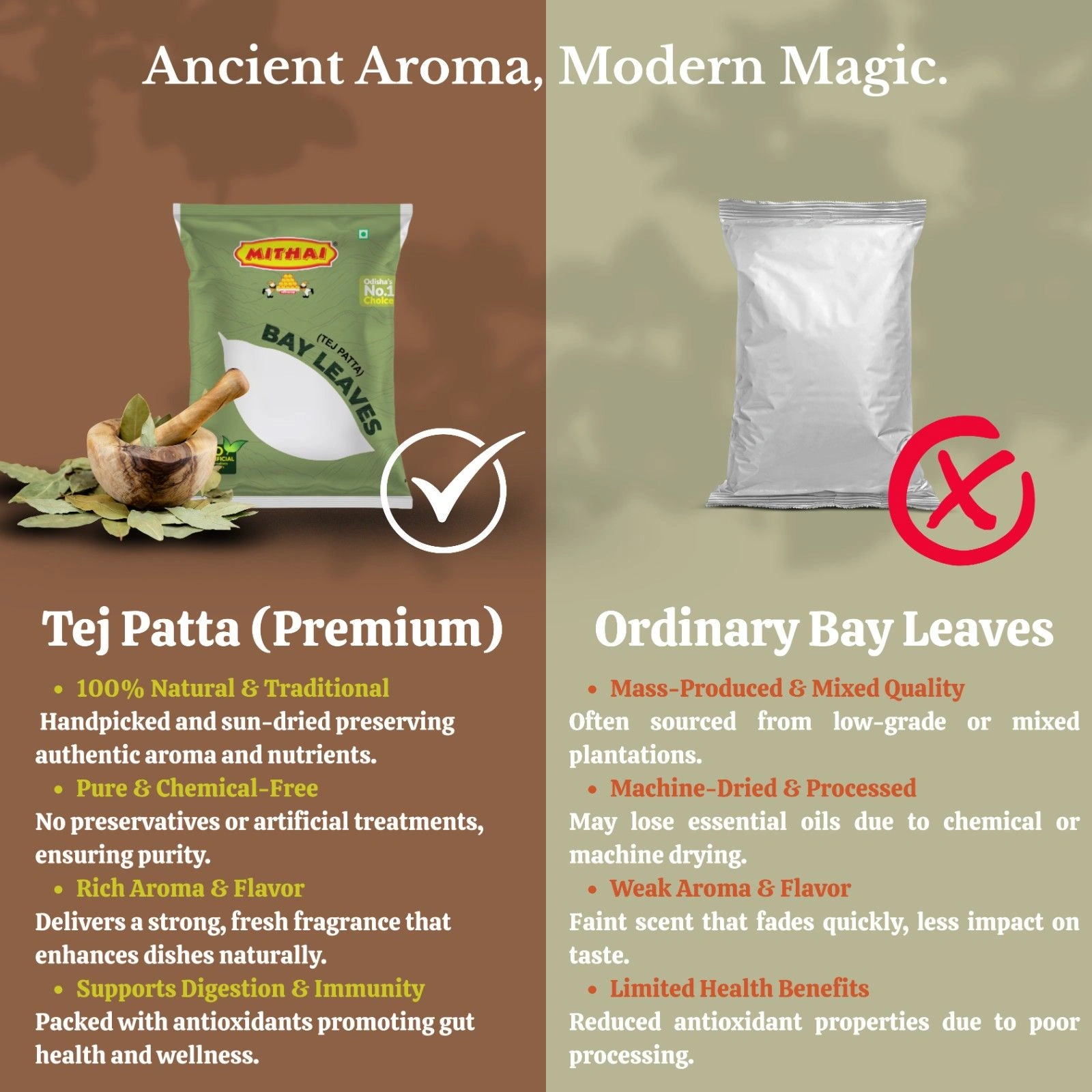 Mithai’s bay leaves are handpicked, sun-dried, and full of warm, aromatic charm. They bring home the rhythm of slow-roasting and fragrant tempering—no sharp industrial smell or old cartons. Breath in the depth, texture, and true freshness every time you stir your tadka or biryani.